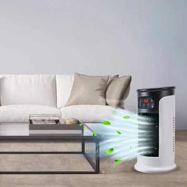 EASY TO MOVE AND STORE: The small, light air cooler fits in most places and is easy to move and store. You may transfer your gadget from room to room with ease thanks to its four caster wheels.