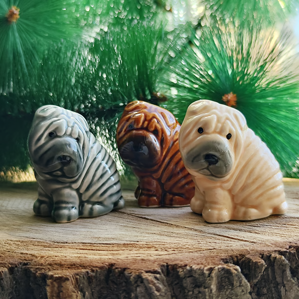figurine Shar Pei puppy ceramics handmade, statuette porcelain